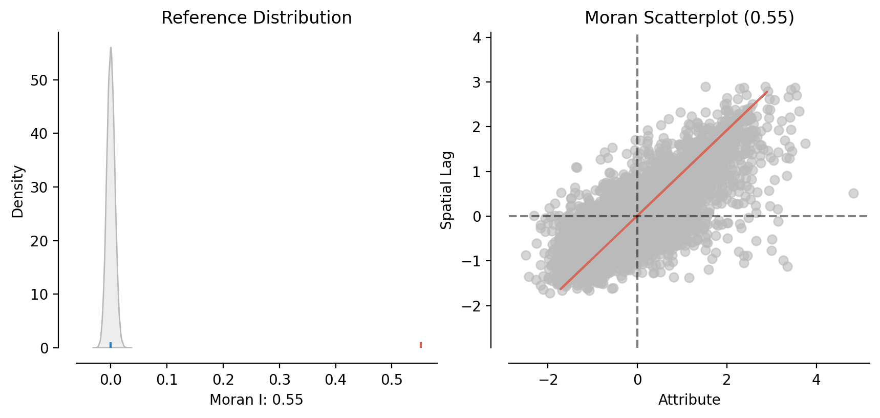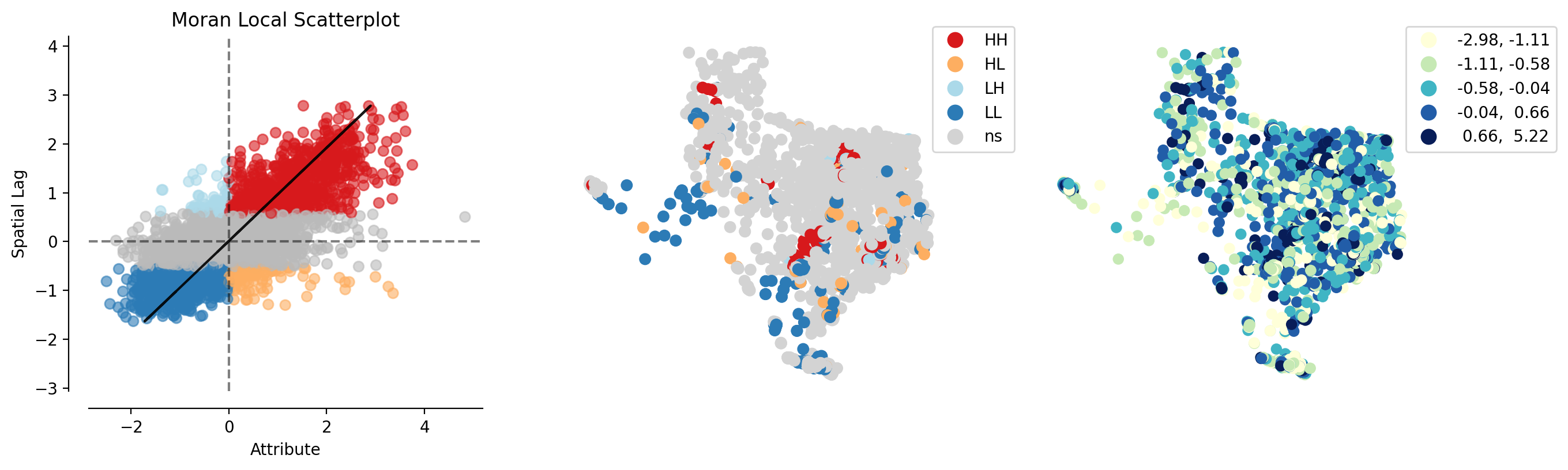 But the distribution of achievement is not geographically even, which can be seen by plotting the average achievement score as a choropleth map, where each school is colored according to its score
