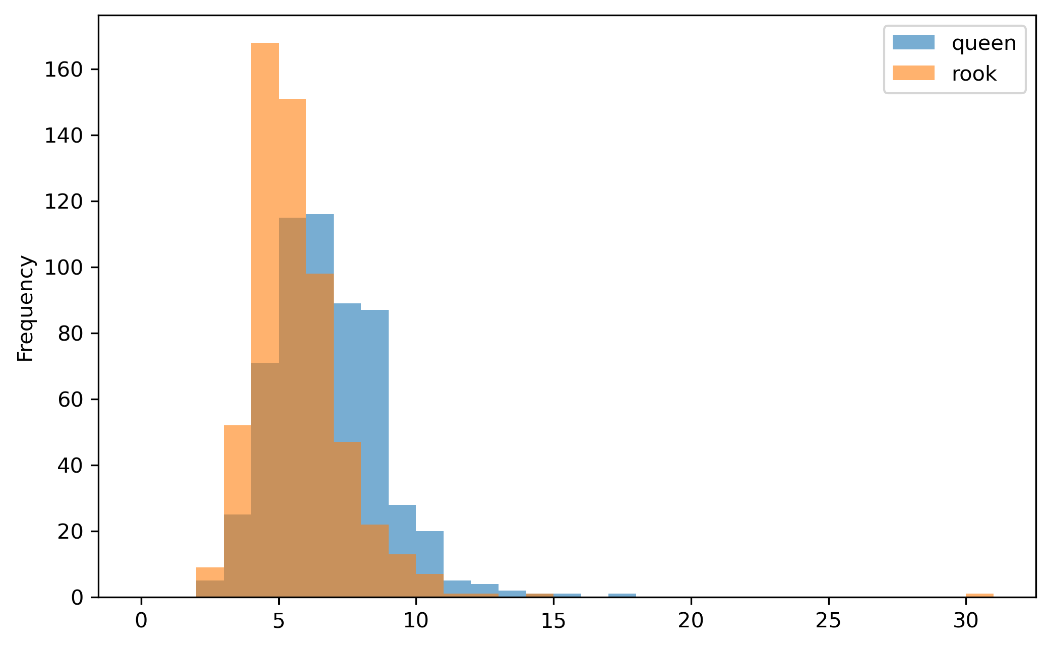 Histogram of Rook Graph Cardinalities