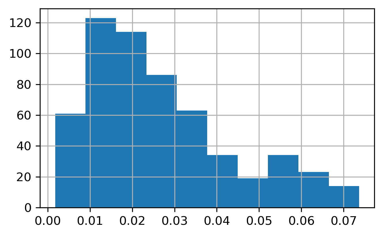 The attribute pct_nonzero stores the share of entries in the \(n \times n\) connectivity matrix that are non-zero. If every observation were connected to every other observation, this attribute would equal 1
