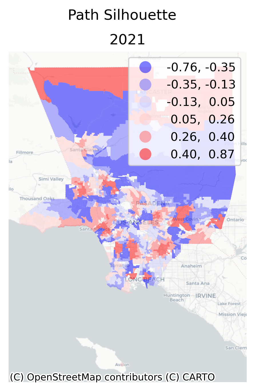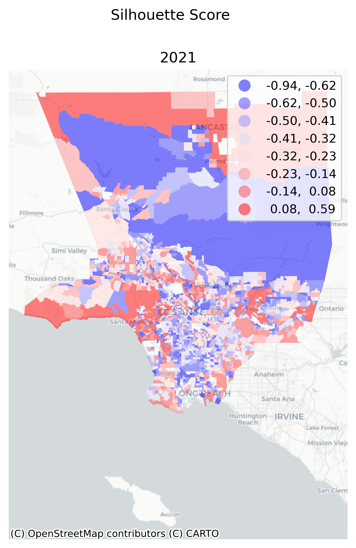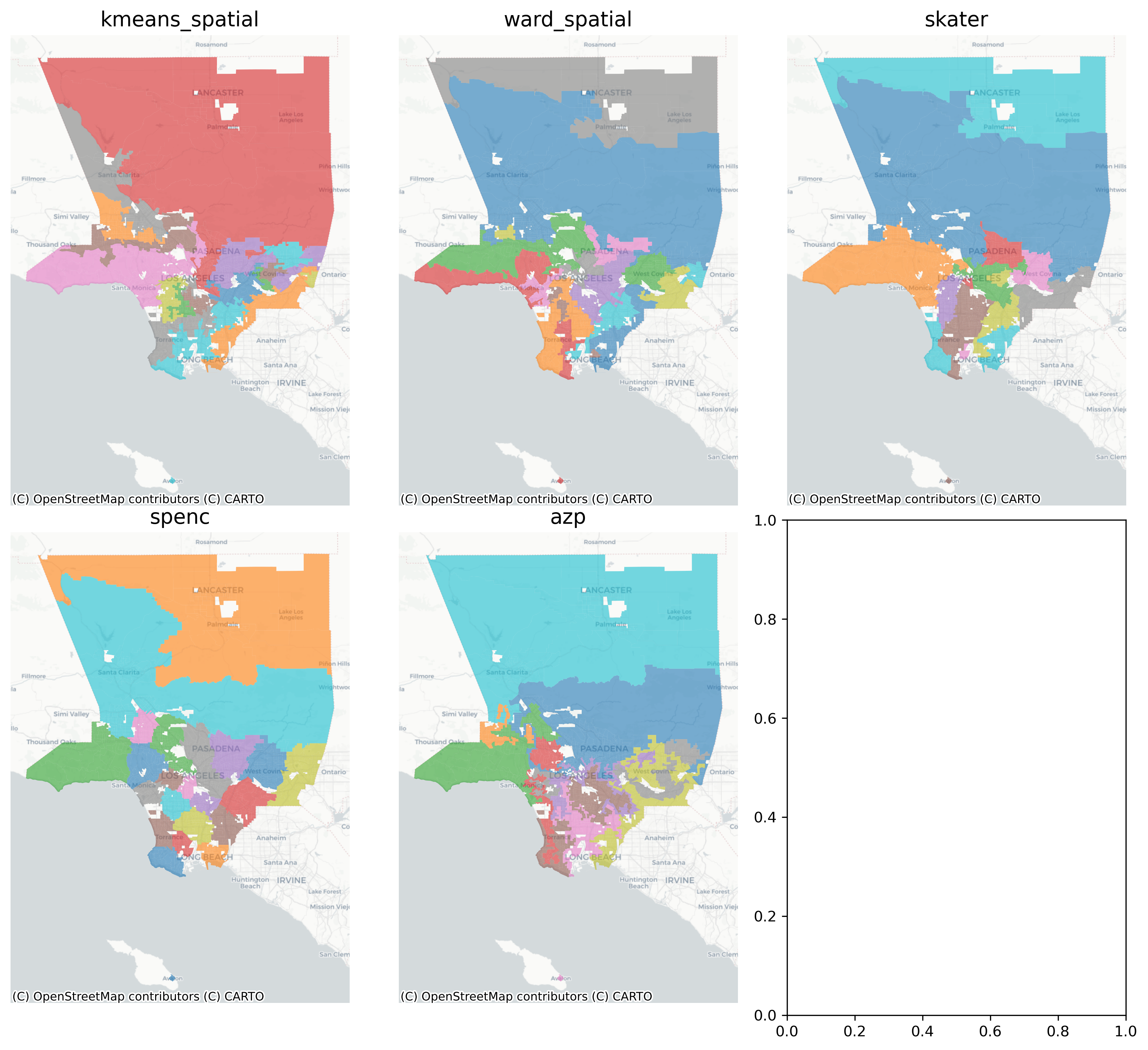 Following that concept, we can use constrained clustering to develop an empirical version of geographically-bounded neighborhoods, where the neighborhoods are defined by internal social homogeneity. This is similar to the historic and well-defined neighborhood zones in places like Chicago and Pittsburgh. If your goal were to try and delineate neighborhoods in a bespoke region as the LA Times tried to do, regionalization would be a data-driven way to do so.